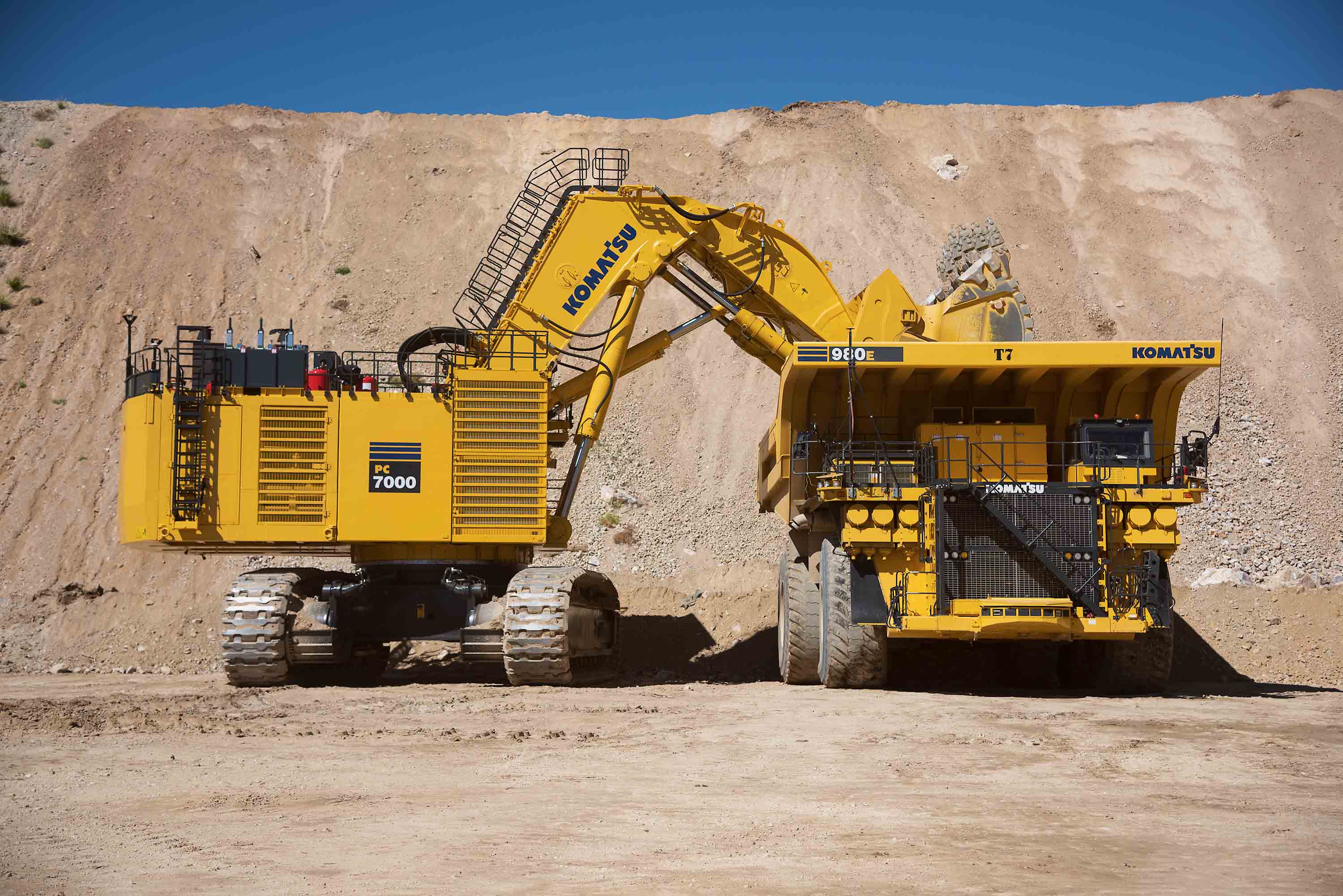 El peso operacional varía de 676 a 694 ton (1.490.600 - 1.530.300 lb). La capacidad del balde estándar es de 38 m3 (49.4 yd3). La PC7000 se adapta a camiones de 185 a 290 t, para obtener la mejor productividad.