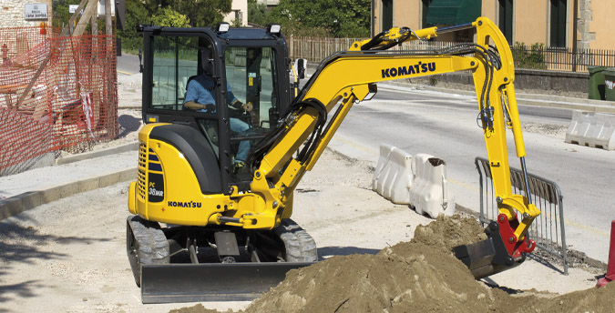 La nueva PC38MR-5 es una miniexcavadora hidráulica con un radio de giro de cola corto y plumas oscilantes que se pliegan a la máquina para facilitar el trabajo en espacios reducidos. La PC38MR-5 consume hasta un cinco por ciento menos de combustible que sus predecesoras MR-3, sin pérdida de rendimiento ni productividad..