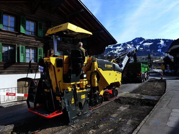 La fresadora en frío BM 1300/35-2 con un mecanismo de giro diseñado perfeccionado está diseñada para el fresado selectivo de superficies de suelos y carreteras. Esta máquina, por su diseño claro y gran capacidad de maniobra, se presta especialmente para los caminos rurales, las obras urbanas y las rotondas. La máxima profundidad de fresado de 330 mm y la disposición lateral del rodillo de fresado permiten fresar hasta el mismo bordillo o muros. Con este fin, el accionamiento de orugas trasero de la derecha se puede girar automáticamente a una posición delante del tambor de fresado.