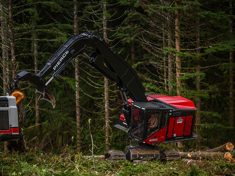 El equipo TimberPro esta equipado con una nueva cabina más grande que ha mejorado la visibilidad tanto en la parte delantera de la cabina como en el lado de la pluma. También está equipado con iluminación LED de alto rendimiento que aumentará la visibilidad nocturna tanto en el área de trabajo como directamente debajo de la cabina para iluminar las vías.