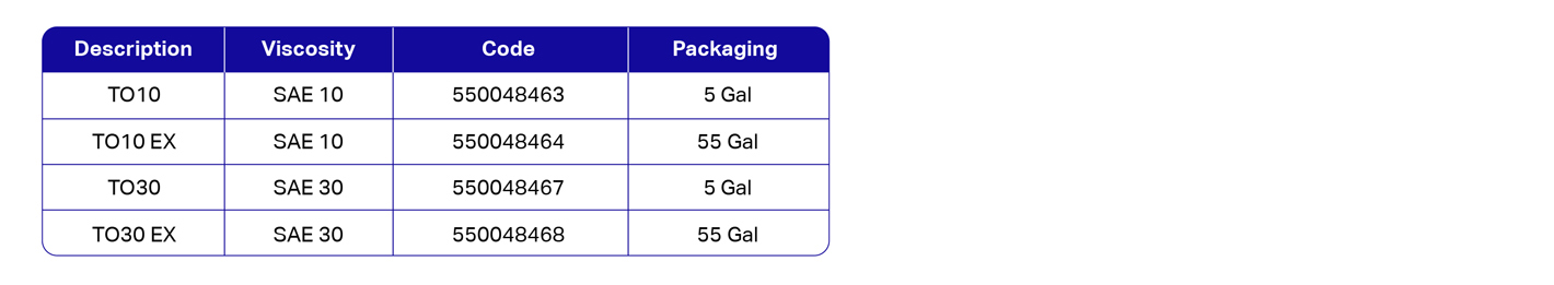 • Heat resistant due to its viscosity. TO10 transmission fluid has a lower viscosity for lower temperature locations, while TO30 fluid is ideal for high temperature locations.