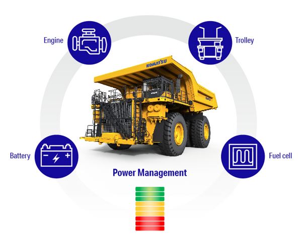 Komatsu ha trabajado para reducir las emisiones de gases de efecto invernadero para sus clientes a través de del desarrollo de productos innovadores durante décadas en muchas áreas, incluidos camiones vertederos diesel eléctricos, palas eléctricas, capacidades de almacenamiento de energía regenerativa y programas de ahorro de combustible.