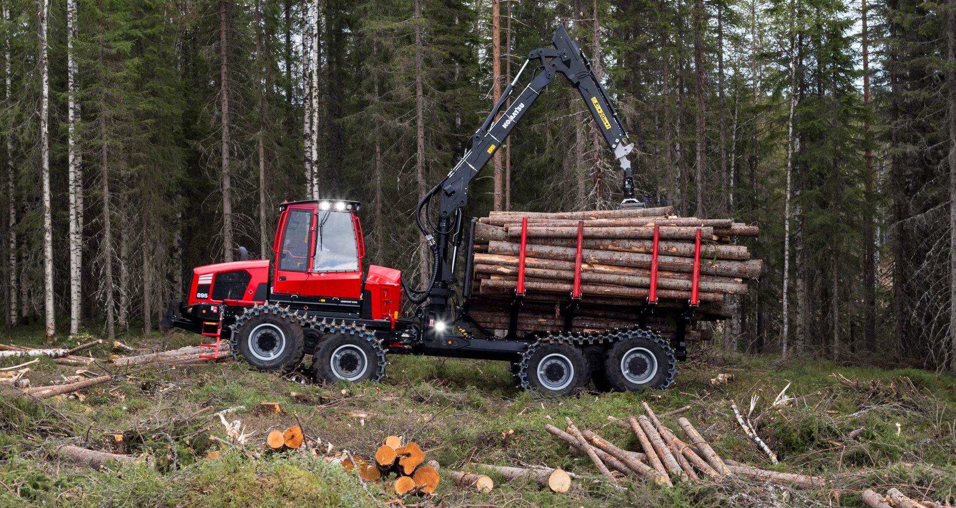 El Forwarder Komatsu 895 en un equipo potente y enfocado en el alto rendimiento en ambientes exigentes, ya que cuenta con un bastidor resistente, una articulación central robusta y con un potente motor SCR, que reduce al mínimo las emisiones y optimiza el consumo de combustible. Otro aspecto que se enfoca en entregar un equipo altamente productivo es su sistema de transmisión, el cual se adapta automáticamente según la carga, la pendiente y los obstáculos.