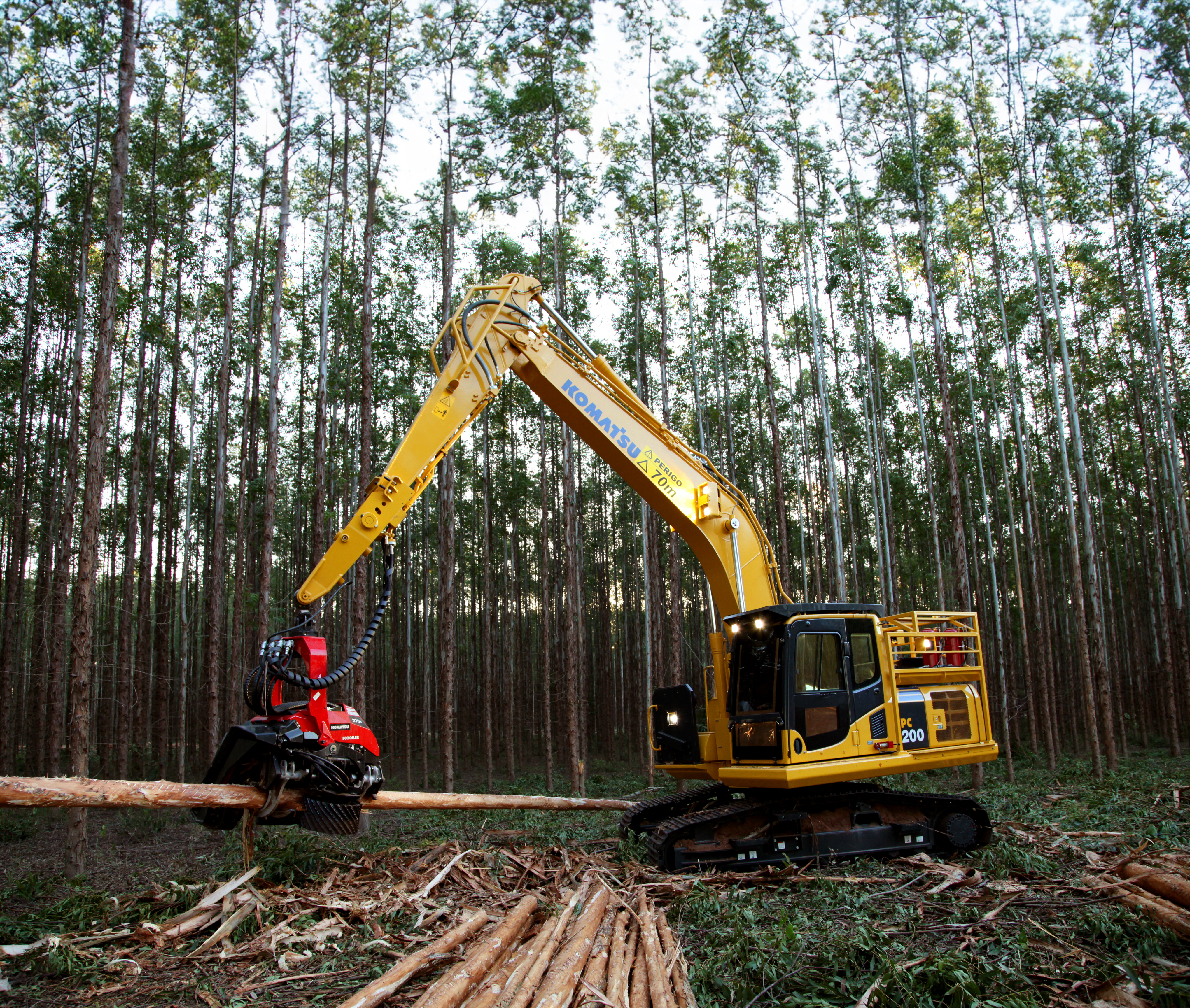 La PC200F ha sido completamente preparada para operaciones forestales. Es una auténtica cosechadora de orugas fabricada en Brasil con el mejor y más completo kit forestal del mercado. Todo de fábrica con la tradicional calidad Komatsu.